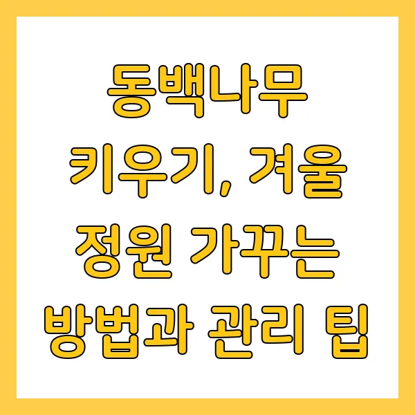 겨울철 동해 방지는 필수! ❄️ 짚이나 낙엽으로 뿌리 덮개(멀칭)를 해주면 뿌리가 얼지 않도록 보호할 수 있어요. 차가운 바람으로부터 보호하기 위해 방풍막을 설치하거나 건물 벽 쪽에 배치하는 것도 좋은 방법입니다. 겨울철에도 동백나무가 푸르름을 유지할 수 있도록 세심한 관리가 필요해요! 😊