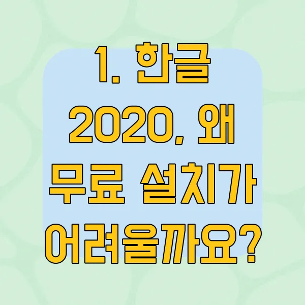 1. 한글 2020, 왜 무료 설치가 어려울까요?