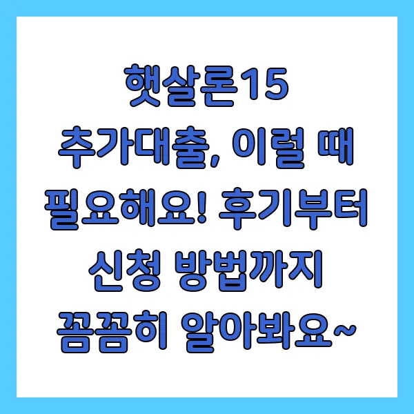 햇살론15 추가대출, 이럴 때 필요해요! 후기부터 신청 방법까지 꼼꼼히 알아봐요~