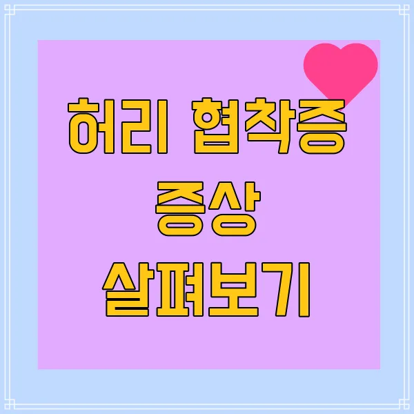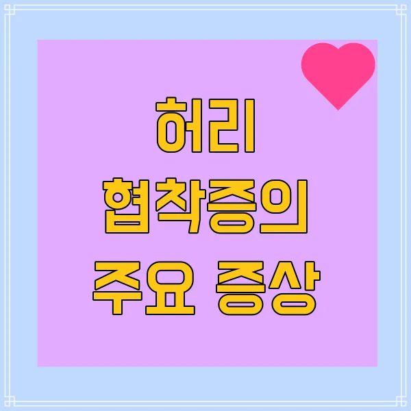 우선 허리 협착증의 가장 주요한 증상은 통증이에요! 허리 통증은 보통 둔하고 지속적으로 나타나며, 특정 자세를 취했을 때 더욱 악화될 수 있답니다. 예를 들어, 장시간 서 있거나 걸어다닐 때 통증이 더욱 심해지는 경우가 많아요. 😩 특히, 평소에 활발히 움직이던 분들이 이 통증 때문에 일상 생활이 힘들어지실 수 있죠.